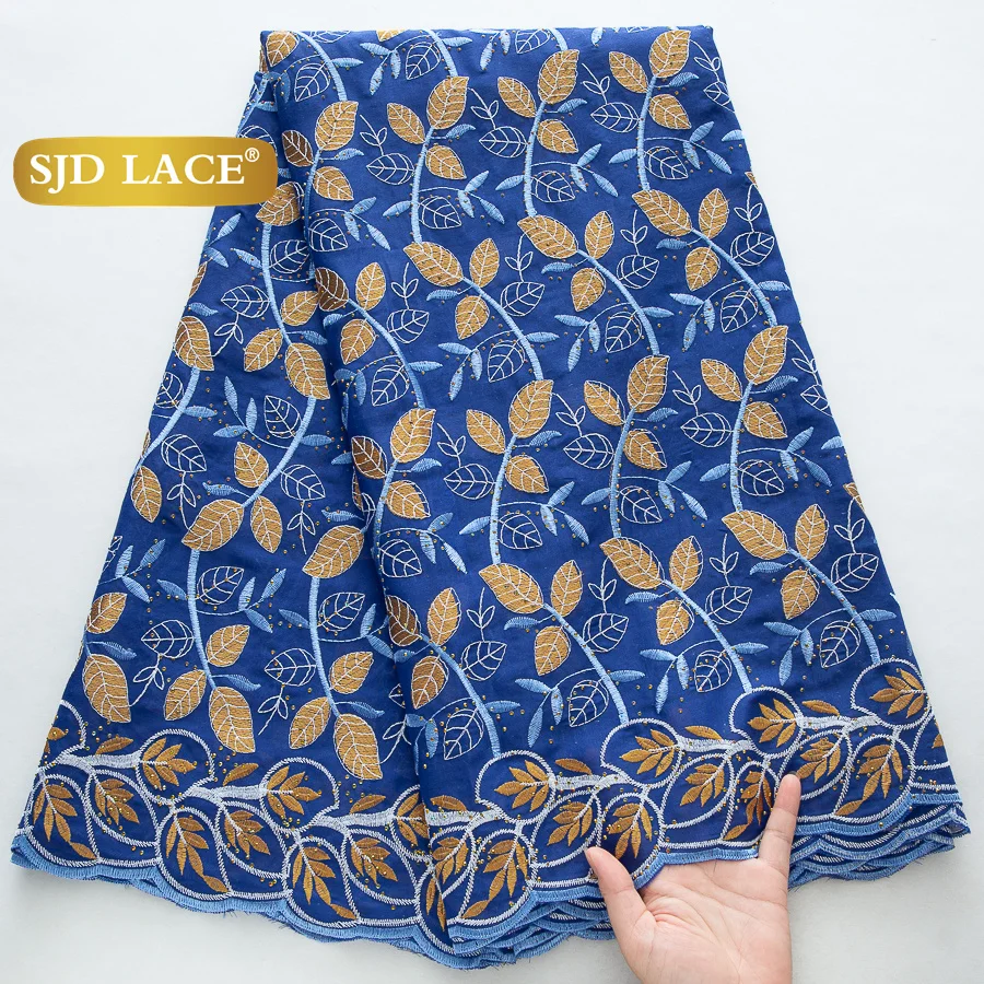 SJD LACE Swiss Voile African Cotton Lace Fabric 2025 High Quality 5 Yards Nigerian Cotton Lace for Sewing Women Party Dress 4460